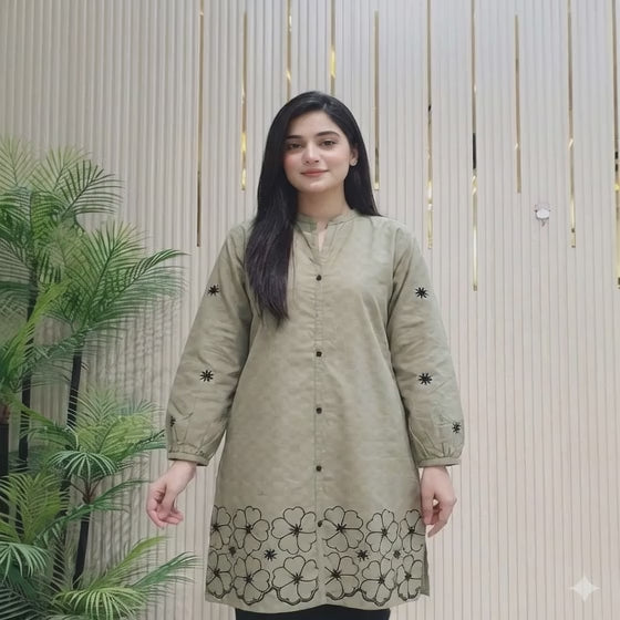 The top comes with fine front embroidery, embroidered sleeves, and side detailing, giving it a classy and modern look. With a 36-inch length, it provides a flattering fit for daily wear, office use, casual outings, and semi-formal occasions. Paired with a matching pant, this ladies stitched suit is easy to wear and maintain.